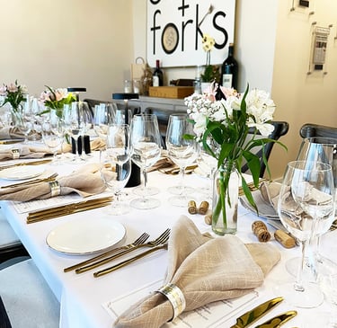 We have a little secret... a "chef's table" at our kitchen which can accommodate up to 18 seated dinner guests, and up to 30 guests for cocktail parties. The fun begins with Cocktails in the Kitchen with the Chefs... Please inquire for more details.