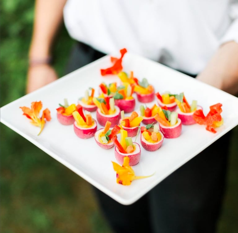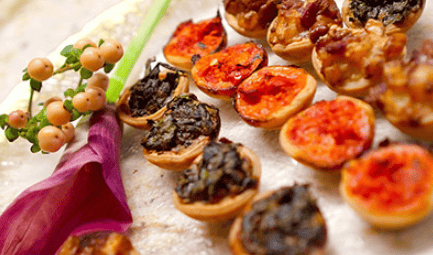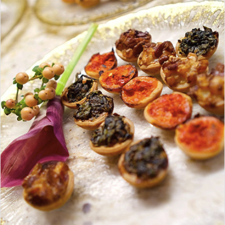 Exquisite small bites that are great for your eloquent cocktail hour to kick off a dinner party or heavy-passed hors d’oeuvres when you don't want to be seated and prefer to mix and mingle all night!